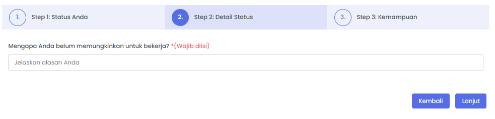 Contoh untuk daftar pertanyaan jika memilih status belum memungkinkan bekerja.
