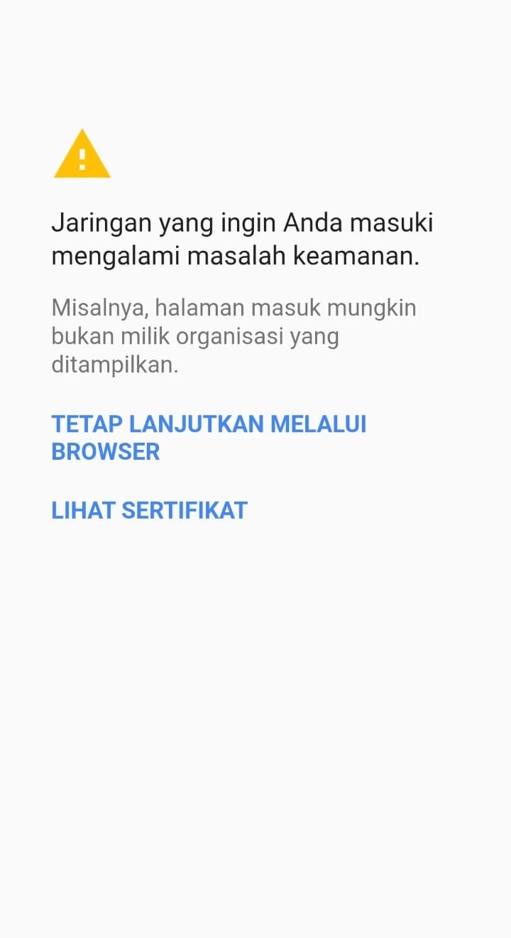 Apabila pengguna mengalami kendala seperti di gambar, maka pengguna dapat memilih "Tetap lanjutkan melalui browser/Continue anyway via browser"